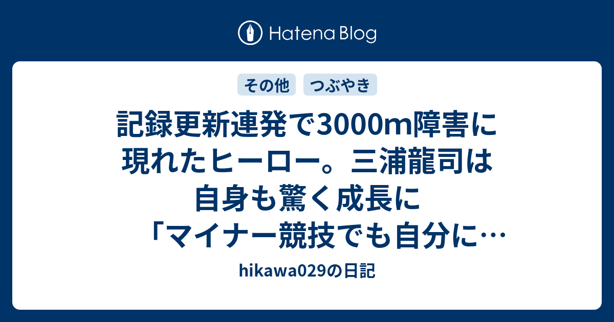 Jun 26, 2021 · 陸上の日本選手権は26日、大阪市のヤンマースタジアム長居で行われ、男子3000メートル障害で三浦龍司(順大)が8分15秒99の日本新記録で優勝し、東京五輪代表入りを決めた。
